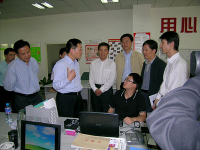 葛市長(zhǎng)一行認(rèn)真聽取了匯報(bào),然后來到員工中間,就關(guān)心的問題和現(xiàn)場(chǎng)工作人員進(jìn)行了交流。最后,葛市長(zhǎng)對(duì)公司已取得的成績(jī)進(jìn)行了肯定,就公司的未來發(fā)展戰(zhàn)略,遇到的困難以及需要得到的支持進(jìn)行了詢問,表示成都正在思考如何抓住網(wǎng)絡(luò)時(shí)代的新機(jī)遇,加速推動(dòng)電子商務(wù)的發(fā)展,并當(dāng)場(chǎng)邀請(qǐng)王總一并前往參加整個(gè)調(diào)研結(jié)束后舉行的座談會(huì)。