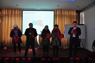 下午,公司還對在過去一年工作中表現(xiàn)突出的優(yōu)秀員工進行了表彰,表彰過程中,穿插了精心準備的互動游戲,游戲者滑稽的表演屢屢引得觀眾哄堂大笑,現(xiàn)場充滿了歡樂的氣氛。